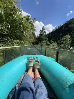 🌪️ Sandu Cliff Rafting: Built on a mountaintop, the glass slide is absolutely insane! With a 68-meter height difference from start to finish, you’ll experience a roller-coaster-like thrill in just 5 minutes, and the mountain spring water splashing all over you is incredibly refreshing!