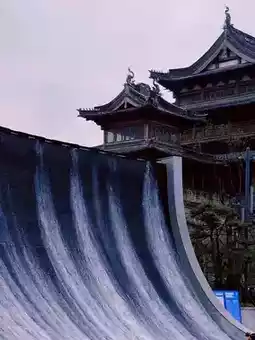 2️⃣Yanguan Tide Wall: The waterfall wall at the entrance of the scenic area opens a tide release show on the hour, lasting ten minutes. When night falls during the sunset blue hour, it looks dreamy and magical, like being in a fairyland.