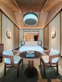 Nad Thai Spa blends traditional Thai massage with Tianmushan's hot springs. Post-stone therapy, wander mountain trails to nature's symphony. Floating afternoon tea on bamboo trays by the pool makes insta-worthy magazine covers. Evenings bring tea ceremonies in the lobby lounge, with singing bowl vibrations and moonlit eaves melting all tension away.