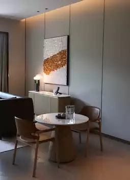 In the guest rooms of Indigo Tianmu Mountain, experience a private dialogue about texture. Soft tones fill the space, while uniquely designed chairs and floral cushions add charm to moments of relaxation. The bathroom is meticulously organized, and the living room and tea break area reveal thoughtful details. Every corner tells a story of leisurely travel, quietly embedding the poetic essence of the mountains into this cozy haven.