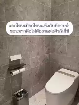 🪞 The mirror by the outside sink can be lit up for putting on makeup. There's also a full-length mirror for taking selfies in front of the mirror before leaving the room. There's an outside sink with separate wet and dry zones. This is great because when you go with friends, you don't have to wait in line to use the bathroom.