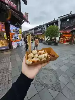 On the first day, we started by going to the West Lake. Let me tell you, it's very beautiful. We can see Leifeng Pagoda from the lake and you can walk there. So we walked around taking pictures until we reached the point. But we didn't go up. We chose to go to Jingci Temple, which is on the opposite side, to take a clear picture of the pagoda. The contrast with the yellow roof of the temple is very beautiful. Then we called a taxi to Raffles City. We recommend anyone who wants to eat Mala Shabu, which is popular among Thais. New sukiyaki, come here. There aren't many people. Shao Kao Long Time Ago is also next door in case anyone wants to eat. The shop is on the 6th floor. After we finished eating, we walked around the mall for a while and then went to Hubin Street. When we arrived, it was late and the shops were starting to close. On the second day, we started here first. Then we went to Hefang Street. There are a lot of restaurants and shops here. We really like the lamb skewers and mini buns (I don't know what they're called lol) but they're so good. We walked around and ate for a while before we went back. Actually, we wanted to go to another place but we got off at the wrong station and walked around for a long time until we finally gave up and decided to go back lol. This is just a rough outline of what we've been to. Hangzhou still has a lot of places to visit. We plan to come back again if we have a chance to go back again. **The hotel we stayed at is right at the high-speed rail station. It's called Hangzhou Railway Station钱唐嘉鮢酒店. It's very convenient and the price is not expensive. There are also a lot of restaurants near the hotel. There's Chagee and a pickled fish and cabbage restaurant called 鱼你在一起 that we like. Go check it out. #TravelChina #Hangzhou #TravelHangzhou #china #chinatrip #hangzhou #westlake #leifengpagoda #newsukiyaki #rafflescity #longtimeago