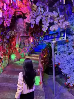 What fascinates me most is the simple atmosphere that retains the traces of time, the small shops of craftsmen hidden in the old streets and alleys, and the friendly smiles of the locals. Hidden in the ancient town is a shop that attracts me very much. The purple-red lights and the colorful and dreamy scenes look like an installation space or tourist attraction with the theme of wishes, called "Lunch Wish Cave". The overall design is like a cave, and the entrance is decorated with a large number of red and colorful heart-shaped wooden signs, which may be written with tourists' wishes or blessings. Small souvenirs are sold upstairs~