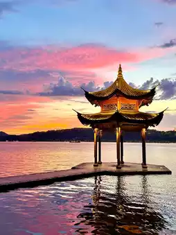 OMG, you won't believe this!! West Lake, just battered by heavy rain, instantly struck back with a "Crimson Romance" that slayed everyone's social media feeds!! The sunset at Jixian Pavilion was so breathtaking it made the entire internet fall in love at first sight!!