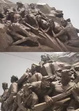 The sculpture "The Hard Struggle" doesn't focus on heroic role models but rather captures the collective spirit and character of countless ordinary yet great people.