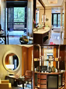 The Four Seasons is like a miniature West Lake, with classic Jiangnan gardens featuring pavilions, bridges, and flowing water—every step a picturesque scene of understated Chinese luxury. Our 70+ sqm garden-view room welcomed us with treats, a handwritten note, and adorable themed snacks and bath amenities for our child, who was thrilled. The floor-to-ceiling windows and traditional sliding doors brought the garden's beauty right inside.