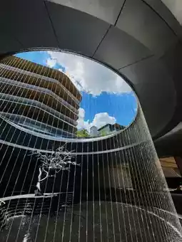 The moment I stepped into the lobby, I was awestruck by the stunning circular waterfall cascading from above—pure elegance!
