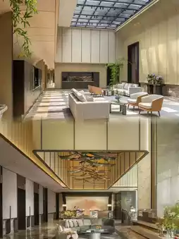 The lobby showcases contemporary luxury infused with Hangzhou’s silk and ink-wash motifs, exuding elegance. Guestrooms are outfitted with premium bedding for cloud-like comfort, while international luxury-branded bath amenities offer a refreshing fragrance. Smart room controls seamlessly manage lighting, curtains, and air conditioning. High-speed Wi-Fi caters to work and leisure needs. The hotel features a sunlit indoor pool, a 24/7 state-of-the-art fitness center, and a spa with signature treatments for ultimate rejuvenation.