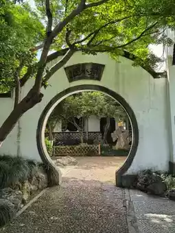 We entered Huagang Garden as sunlight filtered through the leaves, casting dappled shadows on stone paths and quiet ponds 🌳🌸🏞️. The garden unfolded like a painting in motion winding paths led past bamboo groves, curved bridges, and pavilions that seemed to float above the water. Everything here was gentle: the ripple of koi beneath the surface, the rustle of blossoms in the breeze, the soft murmur of footsteps on moss-lined trails.