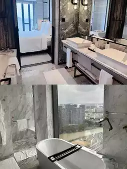Who would've thought! Hidden in downtown Hangzhou lies this divine hotel – floor-to-ceiling windows frame the bustling Wulin Square outside, yet turning around immerses you in the refined elegance of Jiangnan. This contrast completely won me over!