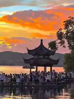 🔹Autumn Moon over Calm Lake: One of West Lake's Top 10 Views, extremely relaxing to enjoy lake views from teahouses (Louwailou Restaurant nearby)