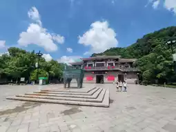Stayed at the Sheraton Fuyang Hotel over the weekend and discovered Dongwu Cultural Park nearby while searching for charging stations. This park, nestled against mountains and facing the river, features an antique-style gate at the entrance with red pillars and white walls, exuding solemnity and grandeur. A bronze cauldron sculpture stands at the center of the square, symbolizing the profound heritage of Dongwu culture. Flanked by lush trees, the spacious square is a popular spot for visitors to relax and take photos. The park integrates the culture of the Eastern Wu Kingdom from the Three Kingdoms period with natural landscapes and historical elements. After breakfast, I walked along the riverbank to the main gate. Free admission granted, I ascended the mountain path on the right. Though Fuchun Pavilion sits at less than 100 meters above sea level, the steep and nearly vertical climb left me drenched in sweat after just 15 minutes.
