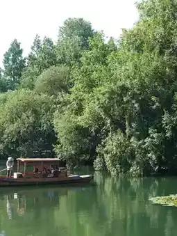 Visitors who enjoy boating can take small boats that pass under stone bridges — capturing the essence of Eastern aesthetics and the unique charm of Hangzhou within the natural landscape.