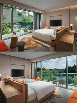 🌈Surrounded by mountains🌲, the hotel offers lush greenery outside your window🌿, with especially fresh air after rain🚿. Perfect for taking kids to explore Tianmu Mountain🏔️ and Chanyuan Temple🚗!