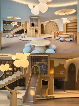 🌈Rooms feature a whimsical forest-themed decor with high-quality slippers👟 and toiletries. Kids will love the slides, swings, and play area—endless fun!