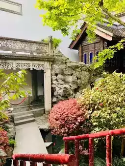 ✅ Architectural Hybrid – Fujian teak + Suzhou rockeries + Western stained glass