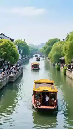 - 🚤 Afternoon: Grand Canal boat tour (¥60) from Gongchen Bridge to Wulin Gate, enjoy riverside scenery