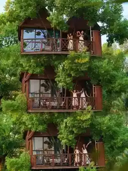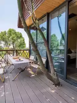 Coming to the treehouse on a rainy day is the perfect choice! Raindrops patter on the leaves, forming small streams as they drip off the eaves. The sound of the wind mixed with birdsong slows the whole world down~