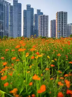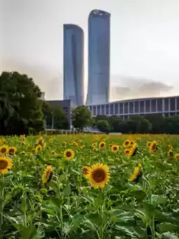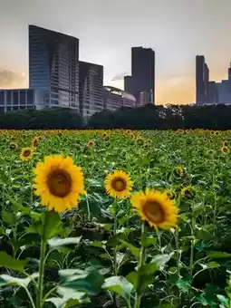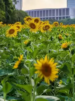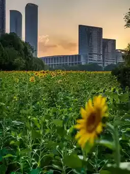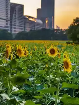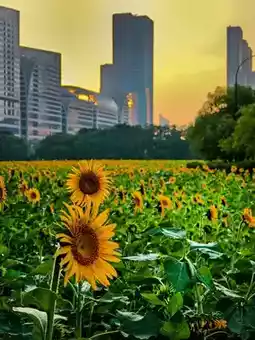 ✅ Choose the right time for double the light and shadow: 5:30 PM - 6:30 PM, the sunset bathes the flowers and buildings in warm gold, backlighting the sunflowers’ outlines, making the petals glow