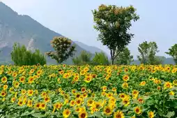 The sunflower sea at Tongjian Lake is very photogenic.