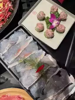 * Fresh ingredients, including meat 🥩, vegetables 🥬, and various meatballs 🥟