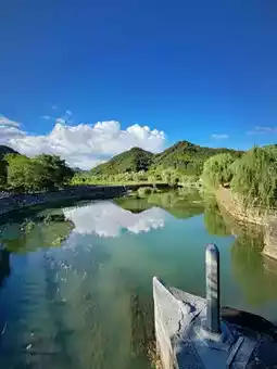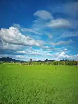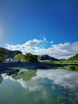 As I ventured into the mountains of Fuyang, the midday sun was intense, yet softened by the clouds overhead. Following the winding creek, it led me to seek a beautiful scene hidden in the mountain wilderness. After walking along the creek for about fifteen minutes, the view suddenly opened up. A stretch of rice fields unfolded along the mountain slope, extending from the creek’s edge up to halfway up the hill, like a piece of green silk dyed through and gently draped over the mountains. The rice seedlings were thriving, their stalks upright and leaves spread out. When the wind blew, the entire rice field rippled with green waves, layer upon layer pushing into the distance. The air carried a faint fragrance of rice flowers mixed with the earthy scent of soil, a fresh aroma unique to the mountains. Looking up, I was struck by the sky’s incredible blue. Unlike the gray haze of the city, it was a clear, light blue, as if washed clean by the creek water. White clouds drifted slowly, their shapes especially charming—some like fluffy cotton candy clustered together, as if you could reach out and pinch their soft forms; others like wisps of gauze scattered by the wind, hanging in the sky and moving slowly with the breeze. Their shadows fell on the rice fields, casting a gentle shade over the green waves. When the sun began to tilt, sunlight filtered through the clouds, casting mottled light and shadows over the rice fields. Under the blue sky and white clouds, the rice fields still shimmered with green waves, the creek water continued to babble, and the mountain scenery was never a spectacular spectacle but held the purest vitality; it was the clear creek water, the green rice fields, the blue sky and white clouds visible just by looking up, and the peace and comfort that made you not want to leave once you stepped in. This poetic mountain scene hidden by the creek will likely be remembered often and stir the heart many times in the days to come.