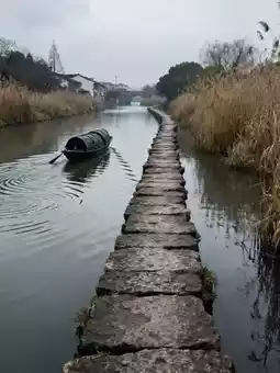 80% fewer people than Wuzhen and Zhouzhuang! The ancient thread road stretches over the canal, with bluestone slabs just above the water. On both sides are rapeseed flowers (March-April) or reeds (October-November). Riding a black-awning boat here feels like stepping into an ancient poem. Plus, the boat ride costs half the price of Wuzhen!