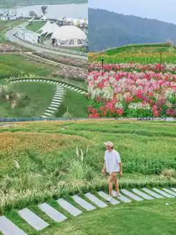 Tongjian Lake Flower Sea: Turn right from the dock to find a vast sea of flowers covering the hills. You can climb the flower slope to overlook the flower sea or camp on the nearby lawn. It’s recommended to wait until evening to watch the flower sea sunset.