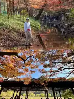 Known as the "hiking pinnacle of Hangzhou," Jiuxi Yanshu🌿 turns into a colorful painting in December! The mountains are ablaze with red maples, camphor trees remain green, and ginkgo trees shine golden🍂. The multicolored leaves reflect in the clear creek, turning the water into a "red stream." Every photo is a stunning scenic shot📸~