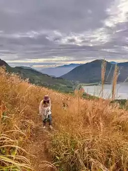 These are not reeds, but the cooler and more elegant silvergrass! The entire hillside is covered with a fluffy golden carpet, and when the wind blows, it looks like waves rolling 🌊. Every snapshot looks like an artistic masterpiece, creating an immersive atmosphere!