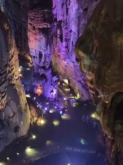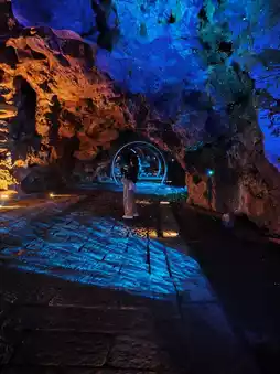2⃣ Colorful lights shine on the stalactites, with red/blue/purple light effects intertwined. Every shot looks like a magical movie scene.