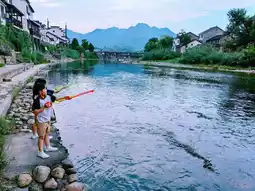 Arriving at Heqiao at dusk, under the twilight, the flowing stream and distant picturesque mountains make it seem like a fairyland! Our family of four walked across the wooden bridge, becoming part of the painting💕