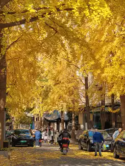 Strolling along Beishan Street, fallen plane tree leaves form a golden carpet