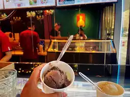 Anyway, the ice cream is good with a variety of flavors, and also a bit pricey too. We’ve tried the hazelnut chocolate and caramel sea salt and we loved it!
