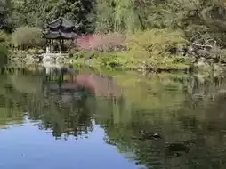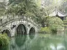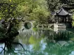 The Red Fish Pond is located in the southern part of Yuanzhong and is the central area for sightseeing in this scenic area. The bank of the pond is naturally winding, with soil piled up in the middle of the pond to form an island and a curved bridge built over the pond. Leaning on the bridge railing and looking down, one can see thousands of golden-scaled red fish swimming in groups, splashing their wings and playing in the water.