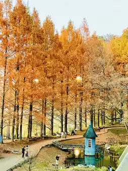 In autumn, the metasequoia trees turn a beautiful orange color, making it a popular photo spot.