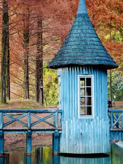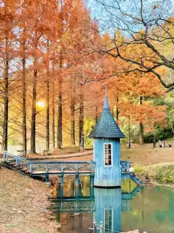 Photo spots: 1. Pointed hut Photo shoot with metasequoia Reflection reflected in the pond