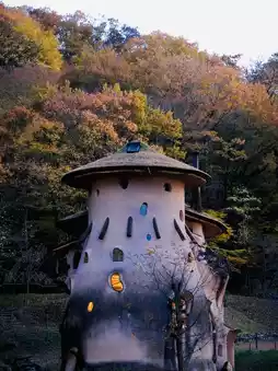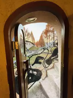 2. Mushroom house Around the ceiling on the top floor View from a small window Pointed hut from the outside stairs