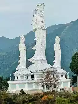 Structures such as the Kusei Daikannon, main hall, Gyokukamon, Niomon, Daishoro, and Heiwa Kannon at the summit stand.