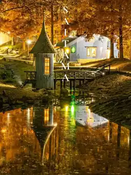 The park features the Moomin House, exhibits of materials related to Tove Jansson, the author of Moomin, and a collection of Moomin-related books.