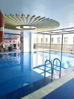 My room is on the same floor as the pool, which has floor-to-ceiling glass compartments, plus a very continental balcony, which feels quite comfortable. There is also a fitness room.