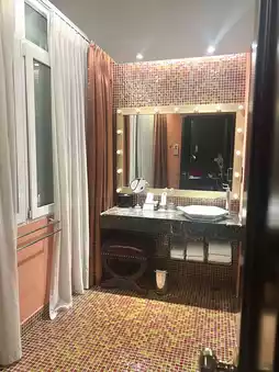 The room was huge, the bed a bit high, and the shower set to look like a stage backstage.