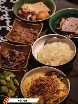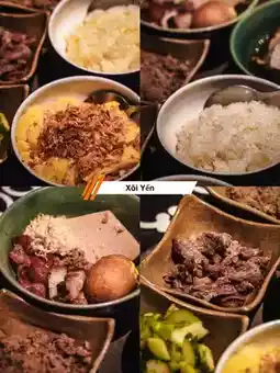 When you come to Vietnam, besides noodles, you must eat glutinous rice. They have three kinds of glutinous rice: pure glutinous rice, one with pea yellow, and one mixed with grains. I personally prefer the mixed grain one because it tastes better. There are so many side dishes, I just ordered MIX. The grilled meat and sausages are delicious, and there is also the Vietnamese specialty liver pâté, the kind that is added to baguette sandwiches. It has a bit of fishy smell, so if you mind it, avoid it.