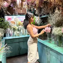 This shop is very beautiful. It's as beautiful as I wanted to come. I came here very intentionally and I was not disappointed. The atmosphere is lovely and comfortable. At first, I thought it was just a cafe, but they also sell food. They also teach flower arranging. I really liked it. There are only flowers and they are fresh flowers. Every corner is beautiful to take pictures. The shop has many branches, but the branch I went to is in the Old Quarter.