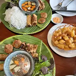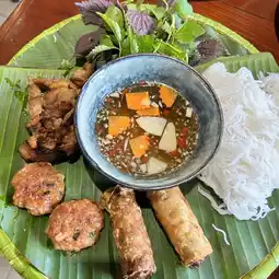 The food is delicious. Since I hadn't eaten rice yet and it was almost noon, I ate rice instead. As usual, I chose Bun Cha. This shop has more vegetables than the first shop I tried. The pork is stronger. But overall, it's delicious!!! Oh my, the bowl is very big. I want to go eat again. Wearing a chic outfit, taking beautiful pictures on every floor is really impressive. And it's very good that the food and bakery zones are divided very well. 😍✨