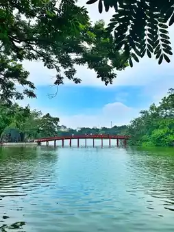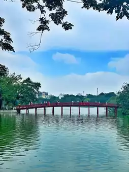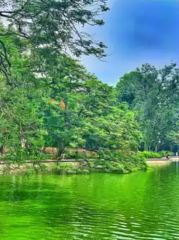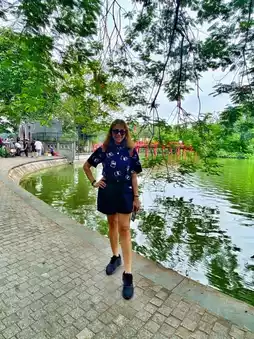 We walked over to Hoan Kiem Lake which is around a 5 minute walk from our hotel. A place where you see a lot of families around as well as food stalls and electric buses to take you around.So much beautiful greenery all around. This is also where the Red Bridge is located, also lots of small stalls selling souvenirs like hats, fans. Loved the sight of the trees reflection on the river, just so pretty!