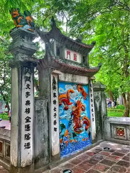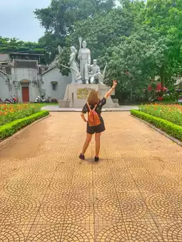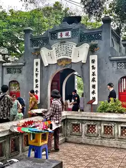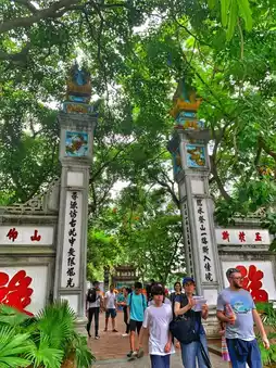 Walked around the Hoan Kiem Lake and saw lots of scenic spots~the entrance to Jade Islet where the Huc Bridge and the Ngoc Son Temple is located and beautiful bushes of flowers with a statue depicting peace as well as local people just doing their thing.So much nature around to appreciate, great spot for everyone to relax, walk, and eat👍
