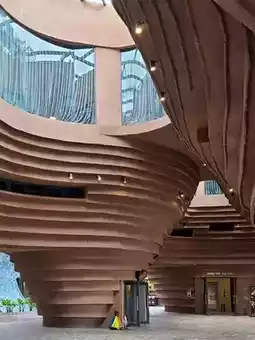 The 4th floor is an outdoor theater with a stage and a cafe & restaurant.