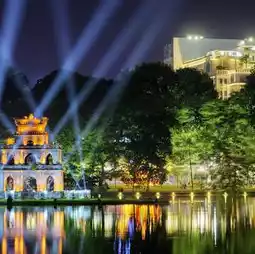 Sword Lake or Hoan Kiem Lake is one of the places to visit in Hanoi when traveling to the capital. Located in the center, Hoan Kiem Lake is considered the heart of this thousand-year-old city. The lake's surface is like a large mirror reflecting the reflections of ancient trees, flowing willow trees, ancient temple roofs and pagodas. , mossy old towers, new high-rise buildings rising to the blue sky.If you have visited Hanoi, Hoan Kiem Lake is a place that you definitely cannot miss. The following article will provide you with the most detailed information about Hoan Kiem Lake as well as places to eat and play near the lake. Hoan Kiem Lake is located in the center of the capital, surrounded by 3 streets Hang Khay - Le Thai To - Dinh Tien Hoang. Previously, the lake also had some other names such as Luc Thuy lake (blue water lake) or Thuy Quan lake (because the lake used to be a place to train combat sailors). In the 15th century, the lake was renamed Hoan Kiem Lake (returning the sword), associated with the legend of returning the treasure sword to the golden turtle of King Le Thai To.
