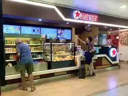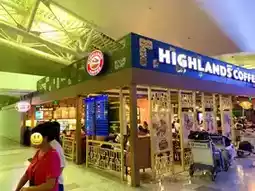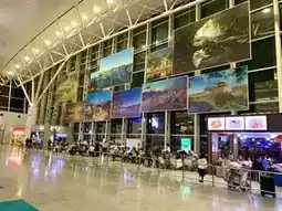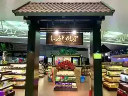 Inside the international terminal, there are cafes, restaurants, and souvenir shops